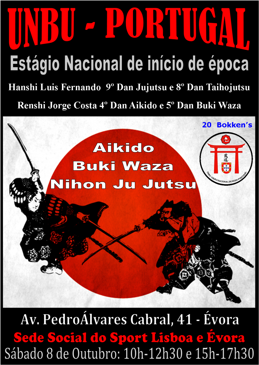 ![]() | Estágio UNBU de início de época 8 de Outubro em Évora Aberto a todas as escolas e estilos de Aikido O evento tem por tema uma prática combinada que permita perceber os pontos de encontro técnico entre o Aikido e o nihon Ju Jutsu. |